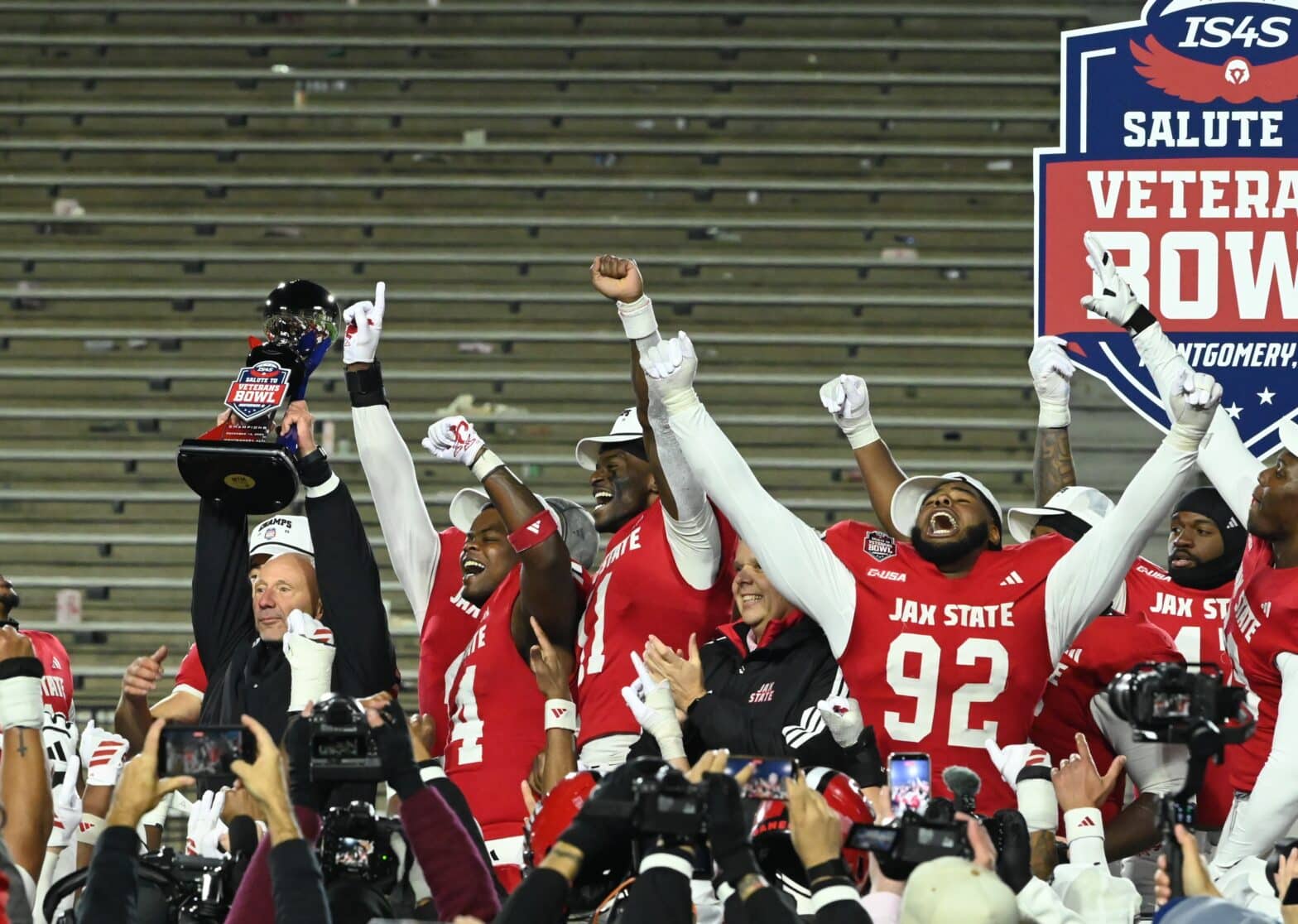 IS4S Salute to Veterans Bowl Game Notes Posted December 17, 2025 Troy Trojans vs. Jax State Gamecocks Tuesday, Dec. 16, 2025 Pregame: Weather: Cloudy, 36 degrees, Wind: 3 mph The 36 degrees is the coldest kickoff temperature in Salute to Veterans Bowl history The previous low was 39 degrees in 2000 (Buffalo vs. Marshall) Troy captains were Jordan Lovett, Devin Lafayette, Jordan Stringer and Colton Walls Jax State captains were Caleb Nix, Travis Franklin, Pearson Baldwin and Trevor Woods Jax State won the toss and deferred to the second half Attendance: 15,721; fifth largest crowd in bowl history; largest since 2019 Time of Game: 3:01; the fastest game in bowl history; previous was 3:03 (2018) Final Score: Jax State defeated Troy 17-13 in the 12th annual Salute to Veterans Bowl It was the Gamecocks’ first win over Troy since Nov. 3, 1990, their last meeting as GSC members Jax State leads the all-time series 34-28-2 Redshirt junior running back Andrew Paul scored the winning touchdown on a 1-yard run in fourth quarter Paul had five carries for 12 yards in the Gamecocks win Redshirt sophomore quarterback Caden Creel was the Johnny Williams MVP Creel was 14-of-20 (.700) for 173 yards and one touchdown in the win He threw a 22-yard TD pass to redshirt senior Brock Rechsteiner on the Gamecocks first possession The game was the first FBS Bowl game between two teams from the state of Alabama Game Notes: Jax State finishes the season with a 9-5 record The Gamecocks have won 9 games every year as an FBS member Jax State is 2-1 in its first three FBS bowl games Troy finishes the season with an 8-6 record The Trojans are the fourth FBS team since 2015 to finish 8-6 (USC, Purdue and Boise State) Creel set the Salute to Veterans bowl record for highest completion percentage He completed 14-of-20 (.700) passes for 173 yards and one TD The previous record was 69.2 percent by Logan Woodside (Toledo) in 2019 Jax State quarterbacks completed 14-of-22 (.636) passes for 173 yards and one TD The 63.6 combined completion percentage is the third highest in Salute to Veterans Bowl history Jax State scored in its first possession of the game (9 plays, 71 yards; 3:41 TOP) The Gamecocks are the second team in bowl history to score in their opening possession Northern Illinois scored on its first possession of the game in 2023 Troy scored on a sack and fumble in the first quarter Redshirt junior linebacker TJ Thompson had a 12-yard sack and fumble Senior nose tackle Luis Medina recovered the fumble in the end zone for a touchdown It’s the sixth defensive TD in Salute to Veterans Bowl history and first since 2021 Jax State redshirt sophomore kicker Garrison Rippa kicked a 51-yard field goal with 6:35 left in the third quarter Rippa’s field goal cut the Gamecocks’ deficit to 13-10 The 51-yard FG is the second longest in bowl history FIU’s Jose Borregales holds the bowl game record with a 52-yard FG in 2019 Troy’s DJ Epps returned the ensuing kickoff 79 yards (TD saving tackle by Caleb Nix) The 79-yard kickoff return is the second longest kickoff return in bowl history Appalachian State’s Darrynton Evans had a 97-yard TD return in 2016 Troy’s 13 points are the second fewest in bowl history The Trojans are the first team in bowl history not to score an offensive touchdown The 30 combined points are the second fewest in bowl history Buffalo (17) and Marshall (10) combined for 27 points in 2020 Troy was 2-for-12 (.167) on third downs; the worst third down percentage in bowl history The previous low was 21.4 percent by Ohio (3-for-14) in 2018 Troy senior linebacker Jordan Stringer recorded 16 tackles and one-half sack in the game The 16 tackles are the second most in bowl history South Alabama’s Maleki Harris had 18 tackles in the inaugural game in 2014